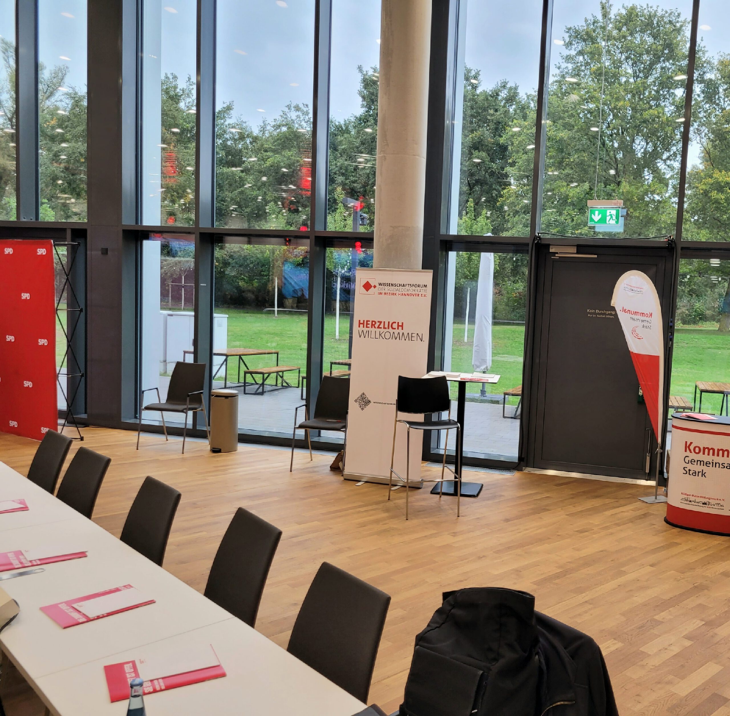 Beim Bezirksparteitag der SPD im Bezirk Hannover präsentierte sich das Wissenschaftsforum der Sozialdemokratie neben anderen Organisationen mit einem Ausstellungs-Stand.